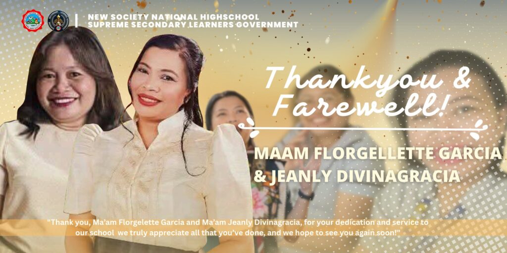 A chapter closes as we say farewell to two of our most dedicated leadersโMa’am Florgellette F. Garcia, Assistant to the Principal for Academics – SHS, and Ma’am Jeanly M. Divinagracia, Assistant to the Principal for Academics – JHS. Your service, guidance, and genuine care have left a lasting mark on every Newsocietian. From the bottom of our hearts, thank you, and may your next journey be filled with success and fulfillment. :