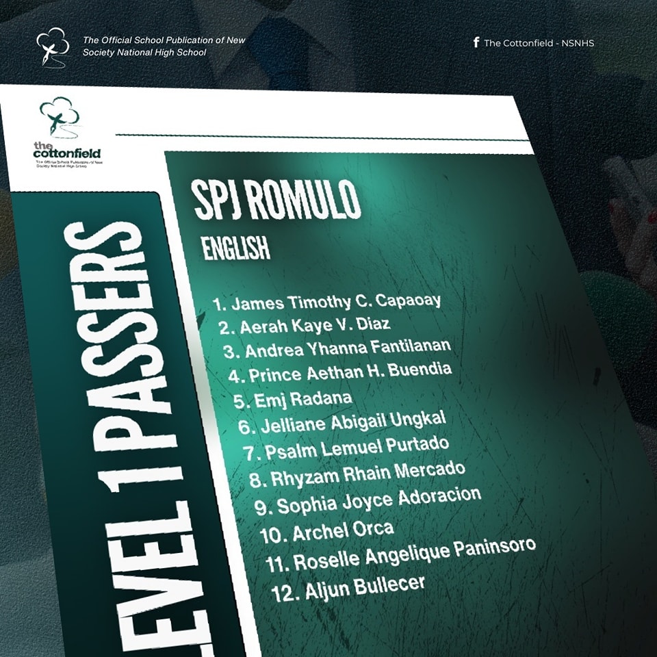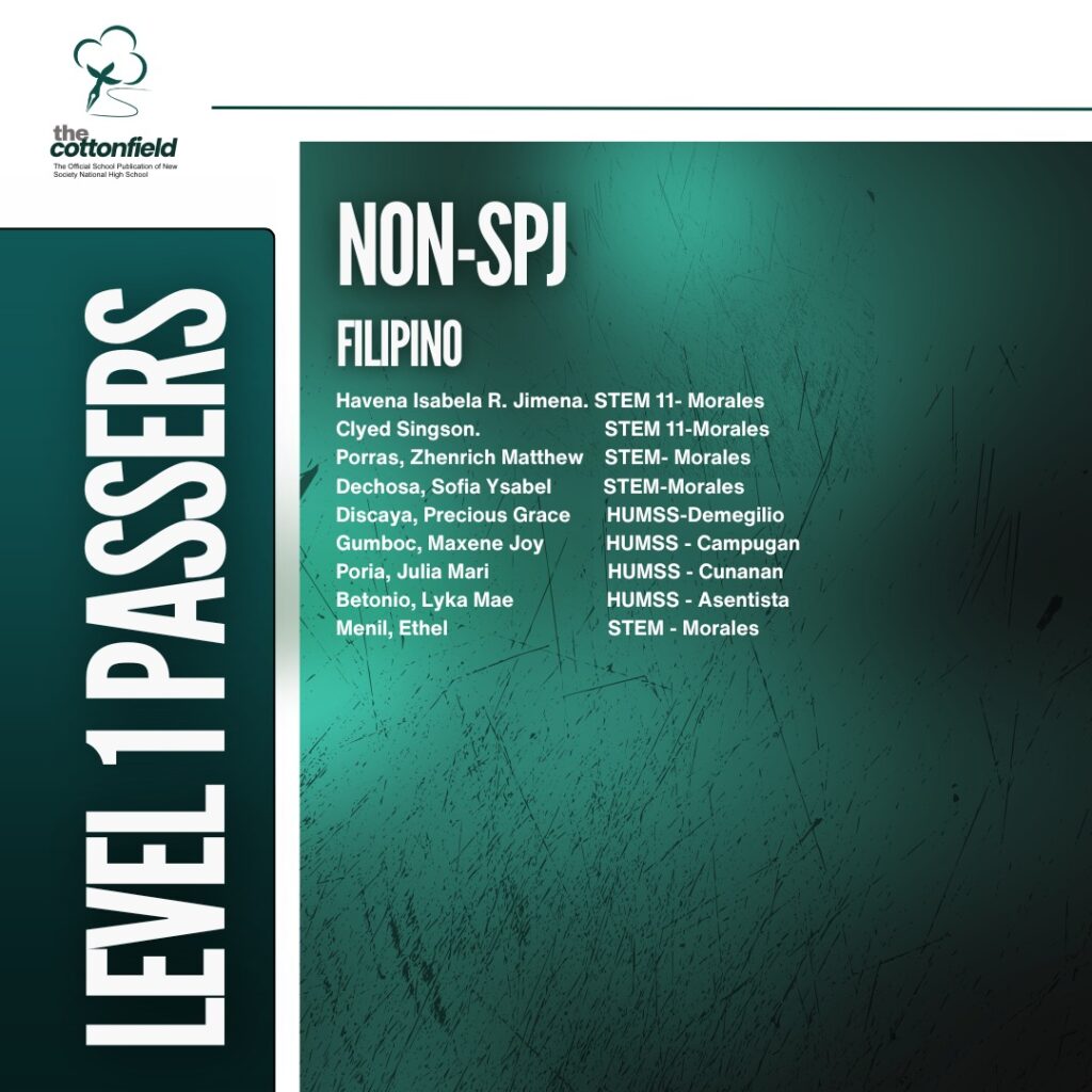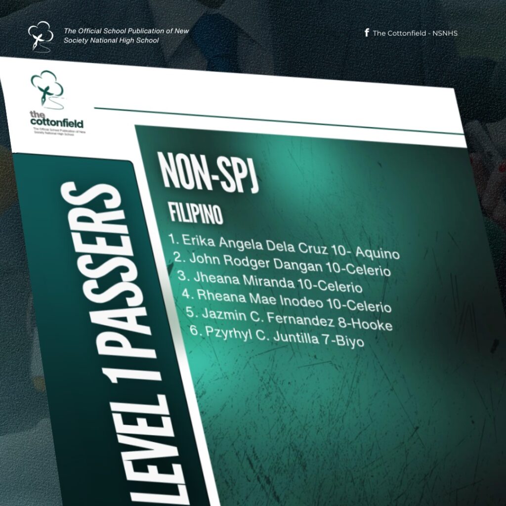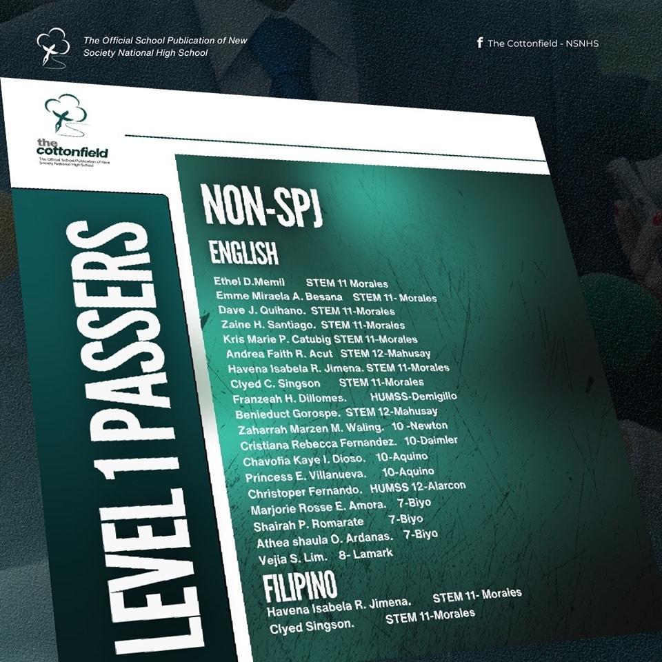 The level 1 screening for the SPJ and non-SPJ English and Filipino categories is now out. Congratulations to the following campus journalists! The SPJ Filipino category is to be announced soon