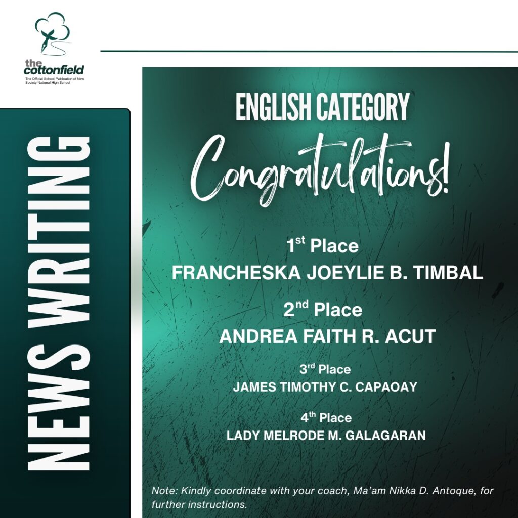Congratulations, aspiring journalists! Here are the partial results of the School-Based Press Conference. Follow our page for updates on the results of other categories!