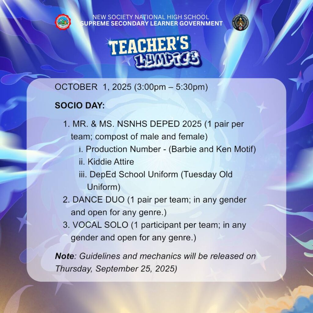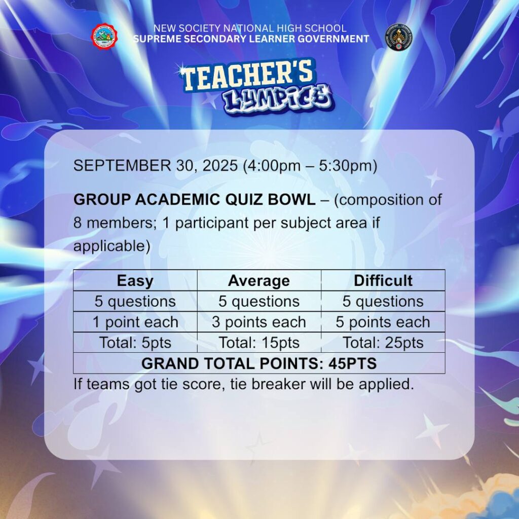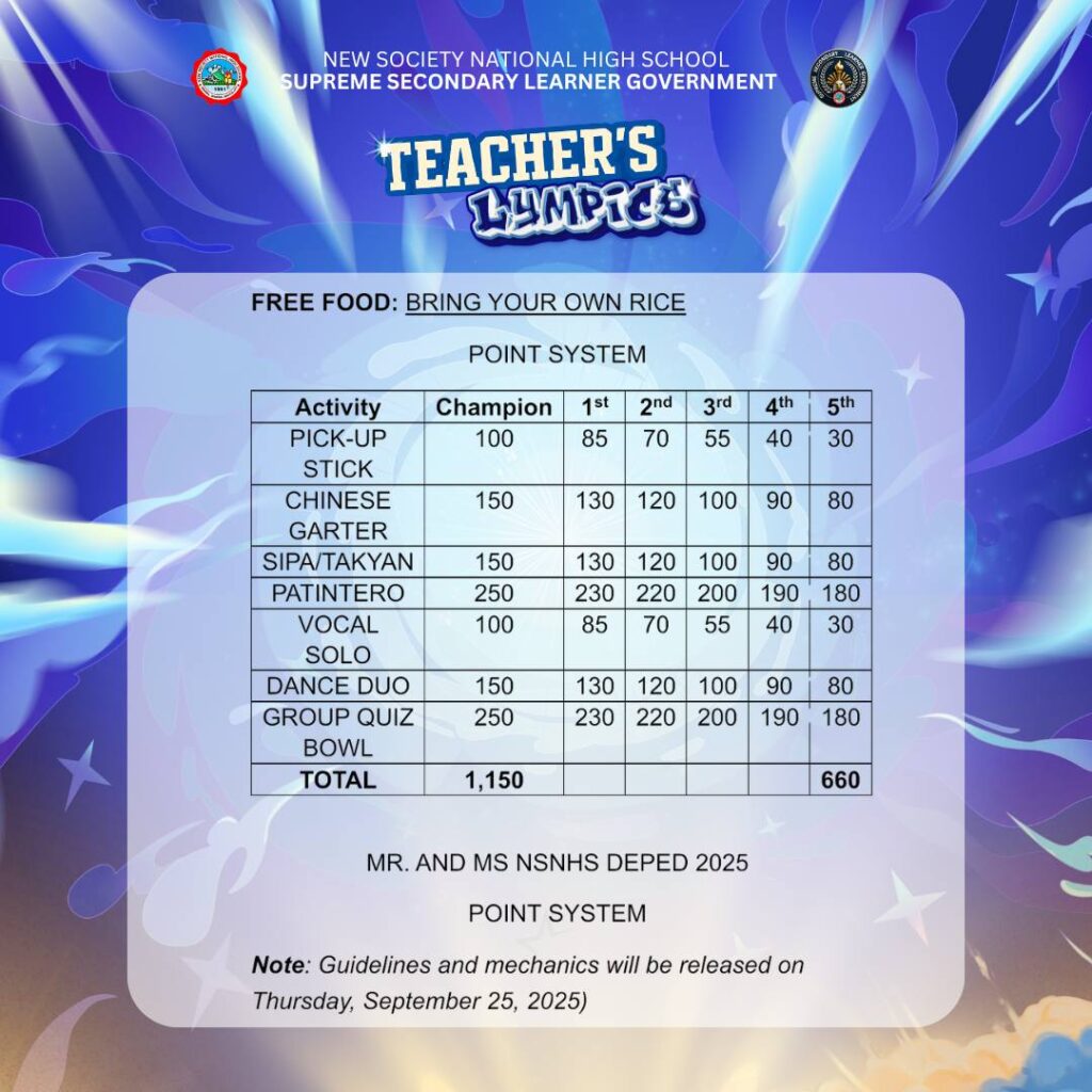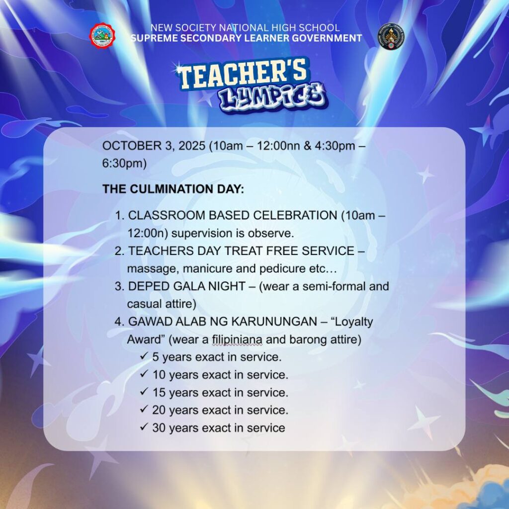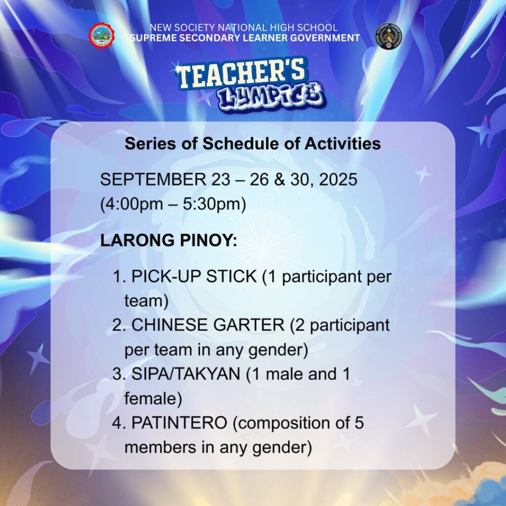 BannerTrending NewsSERIES OF SCHEDULE OF ACTIVITIES AND MECHANICS – TEACHER LYMPICS 2 – 2025 nsnhs3 weeks ago01 mins Post navigation Previous: TEACHER’S LYMPICS – YEAR 2Next: 𝗗𝗮𝘆 2 𝗛𝗶𝗴𝗵𝗹𝗶𝗴𝗵𝘁𝘀 – 𝗟𝗮𝗿𝗼𝗻𝗴 𝗟𝗮𝗵𝗶
