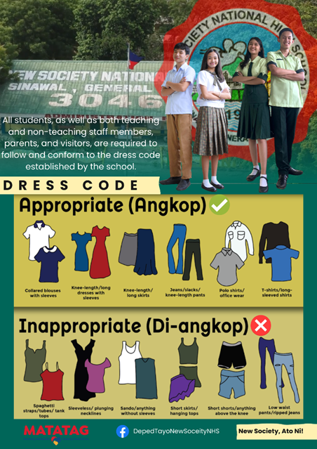 NewsNSNHS DRESS CODE: STUDENTS’, TEACHING AND NON-TEACHING STAFF MEMBERS, PARENTS, AND VISITORS nsnhs5 months ago1 month ago01 mins Post navigation Previous: We apologize for any inconvenience, but this website is undergoing maintenance.Next: HAPPY BIRTHDAY, 𝗠𝗮’𝗮𝗺 𝗡𝗼𝗿𝗺𝗶𝗹𝗮 𝗠. 𝗔𝗻𝗱𝗮𝗻𝗴!
